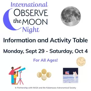 We thank NASA and the Kalamazoo Astronomical Society for their partnership in providing materials for International Observe the Moon Night.